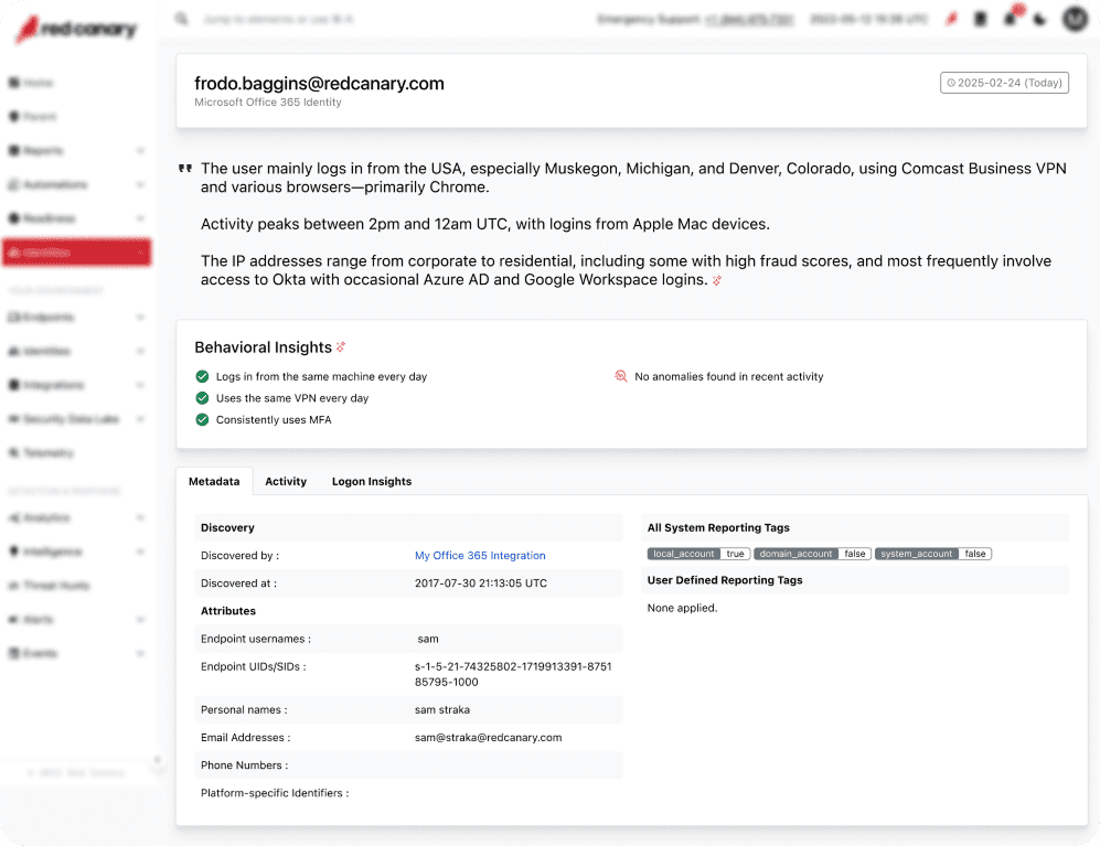 I led the redesign of Red Canary’s Identity Profiles, introducing actionable insights powered by generative AI and a modernized user experience. The update strengthened customer retention and gave us a significant competitive edge in a previously stagnant area of UX.
